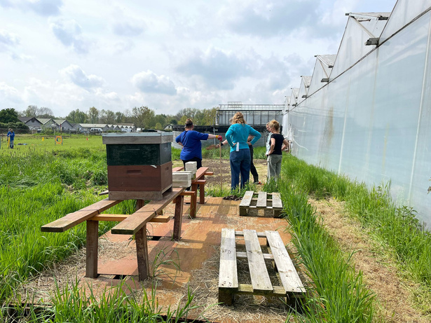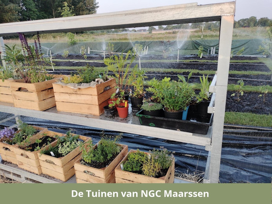 Achter het gebouw van NGC Maarssen ontvouwt zich project 'Positieve Gezondheid Kwekerij Stichtse Vecht'. Een groene ontmoetingsplek voor educatieve activiteiten, samen tuinieren en groei in verbinding met de natuur.