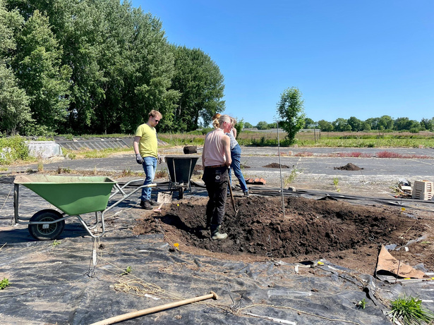 Nu wordt de complete planning gemaakt voor de beplanting en de randen/bakken van de paden. Extra leuk detail is dat we de bakken gaan maken van oude dakpannen als kleine verwijzing naar de historische steen- en dakpannenfabriek Vecht en Rhijn in Stichtse Vecht (Breukelen).